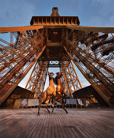 How do you get four horses most of the way up the Eiffel Tower? In the lift, two at a time, of course. We know this for certain because the Italian artist Paola Pivi has done it. And to otherworldly effect.
